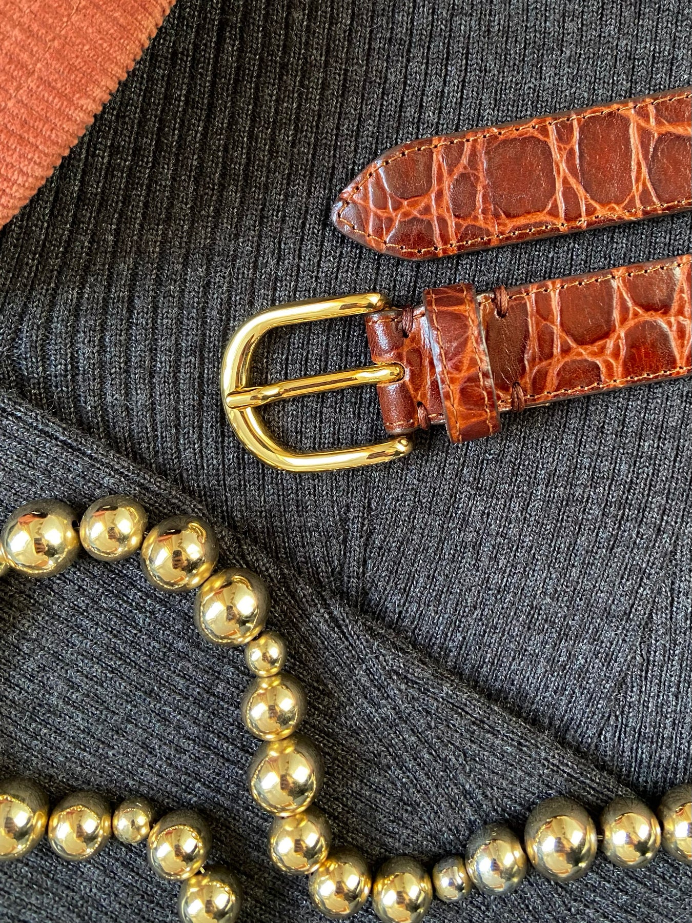 CASHOTT CASVERA Croco Belt Leather Belt Dark Brown